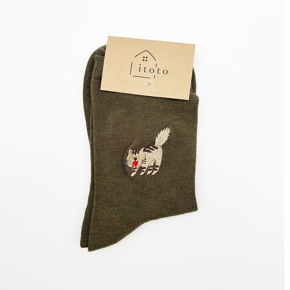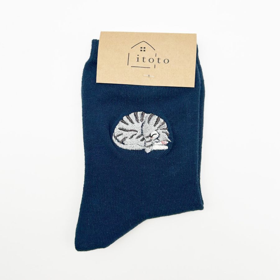丹波屋栃木銘店&itotoコラボ商品 靴下(レディース) 眠り猫