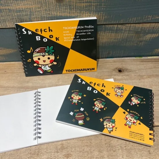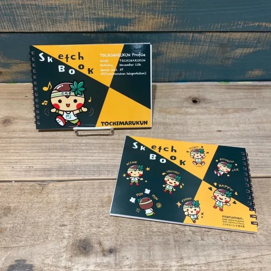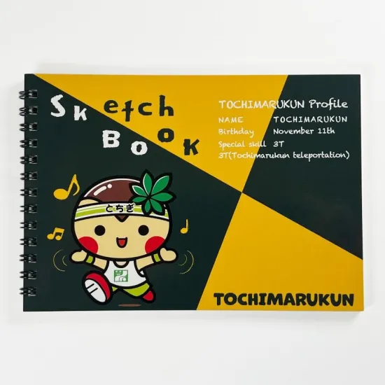 栃木県のゆるキャラ、とちまるくんを表と裏にデザインされたかわいいスケッチブックです。
