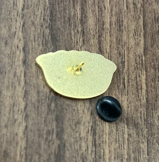 裏面は金属そのままでラバーの針留めが付きます。