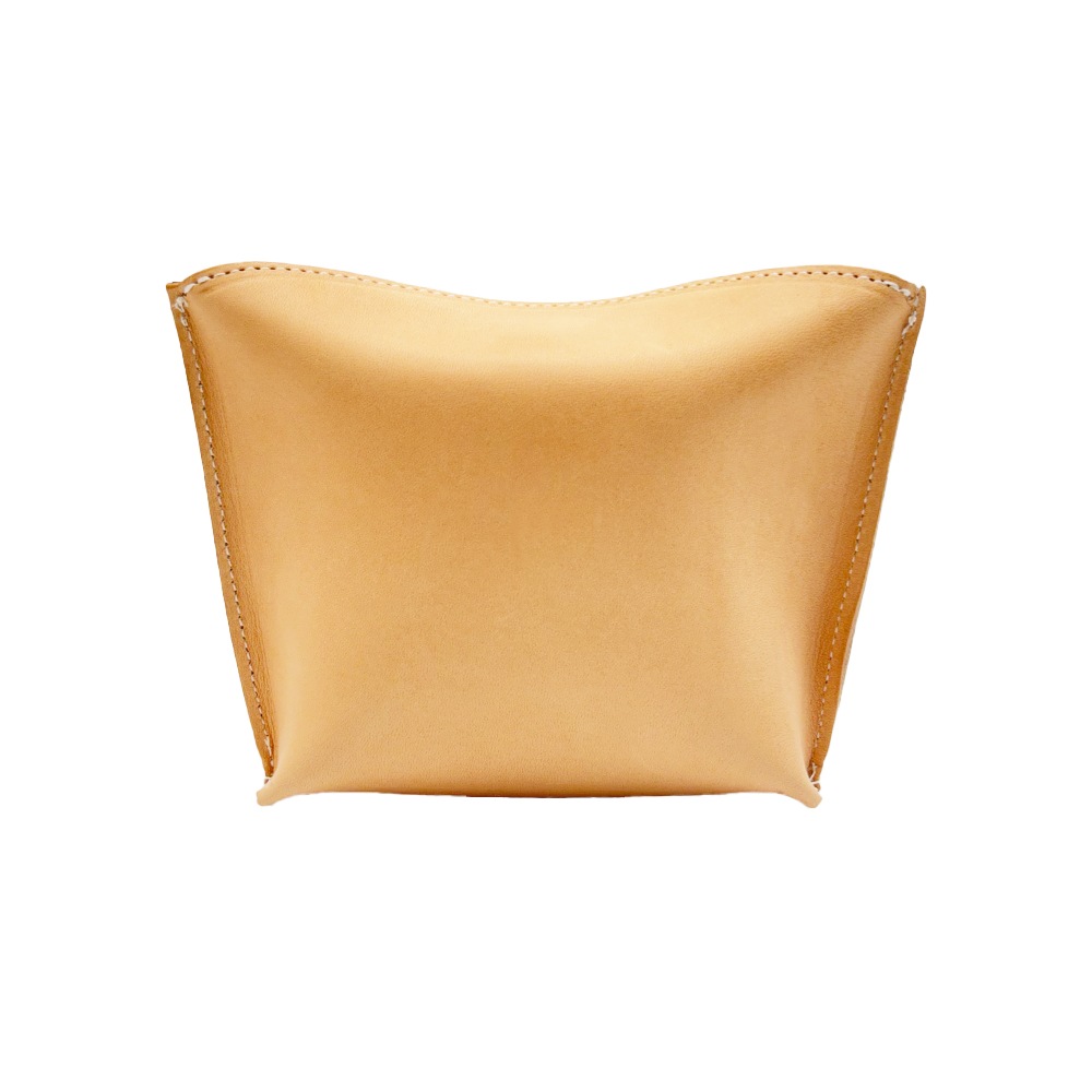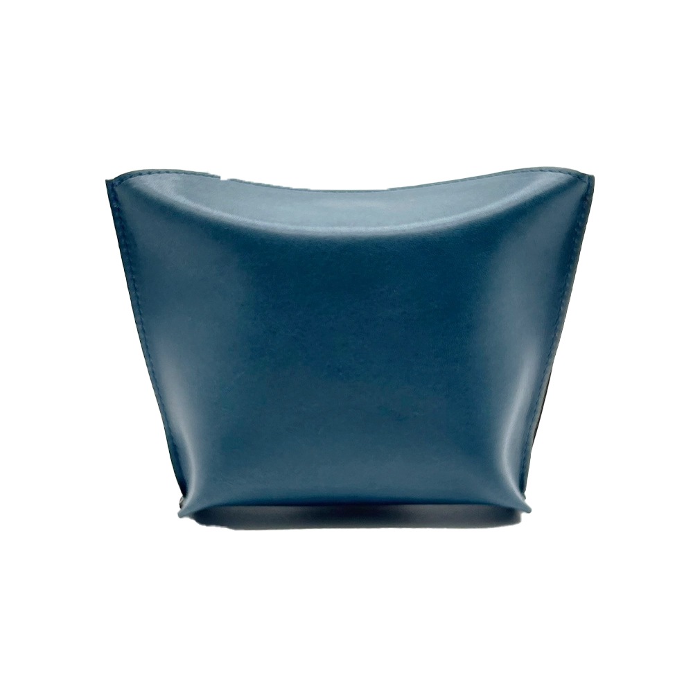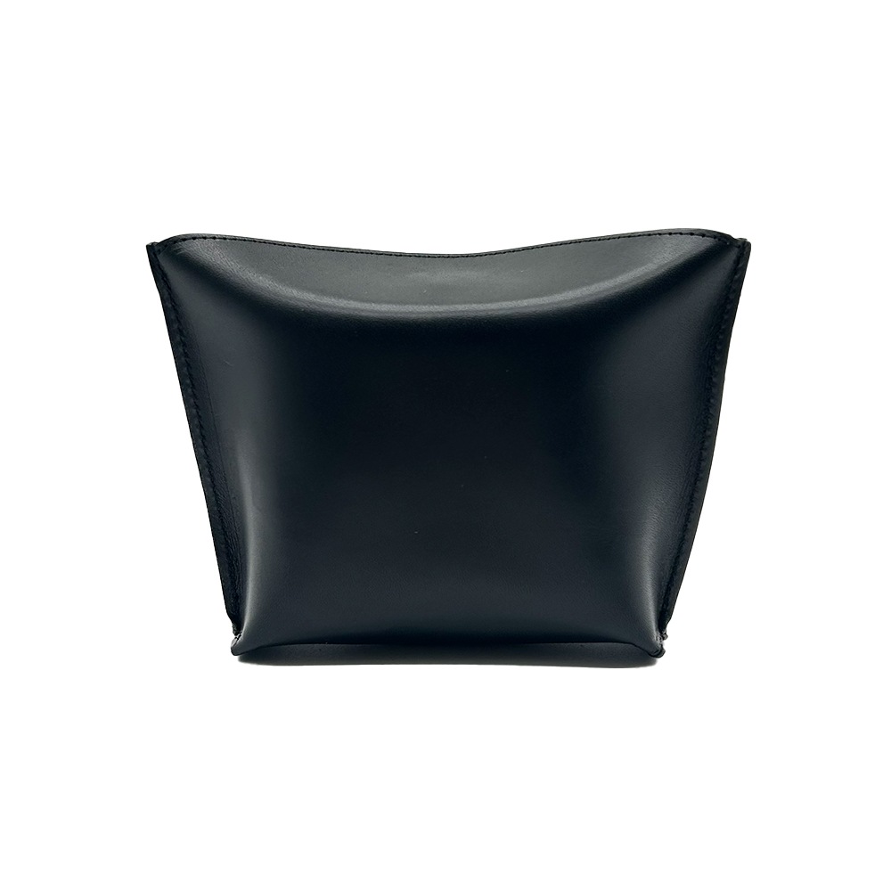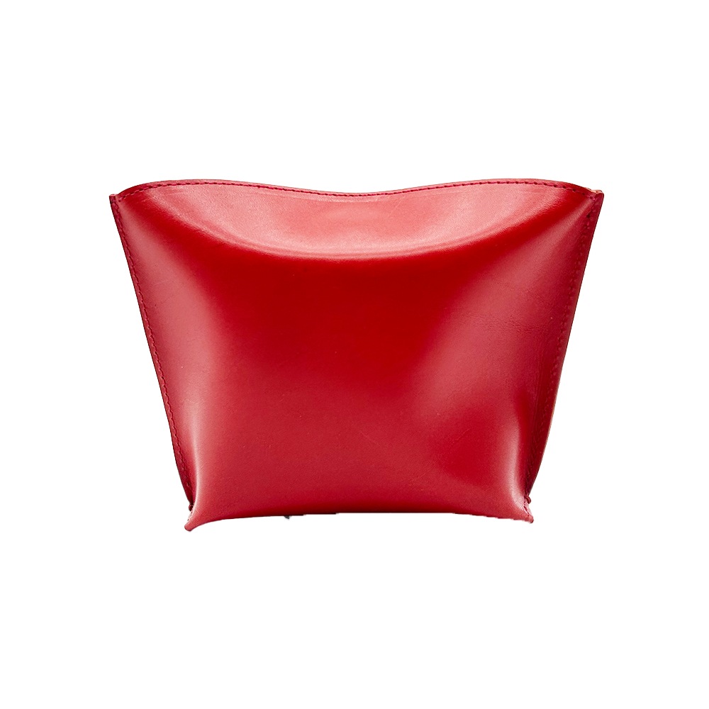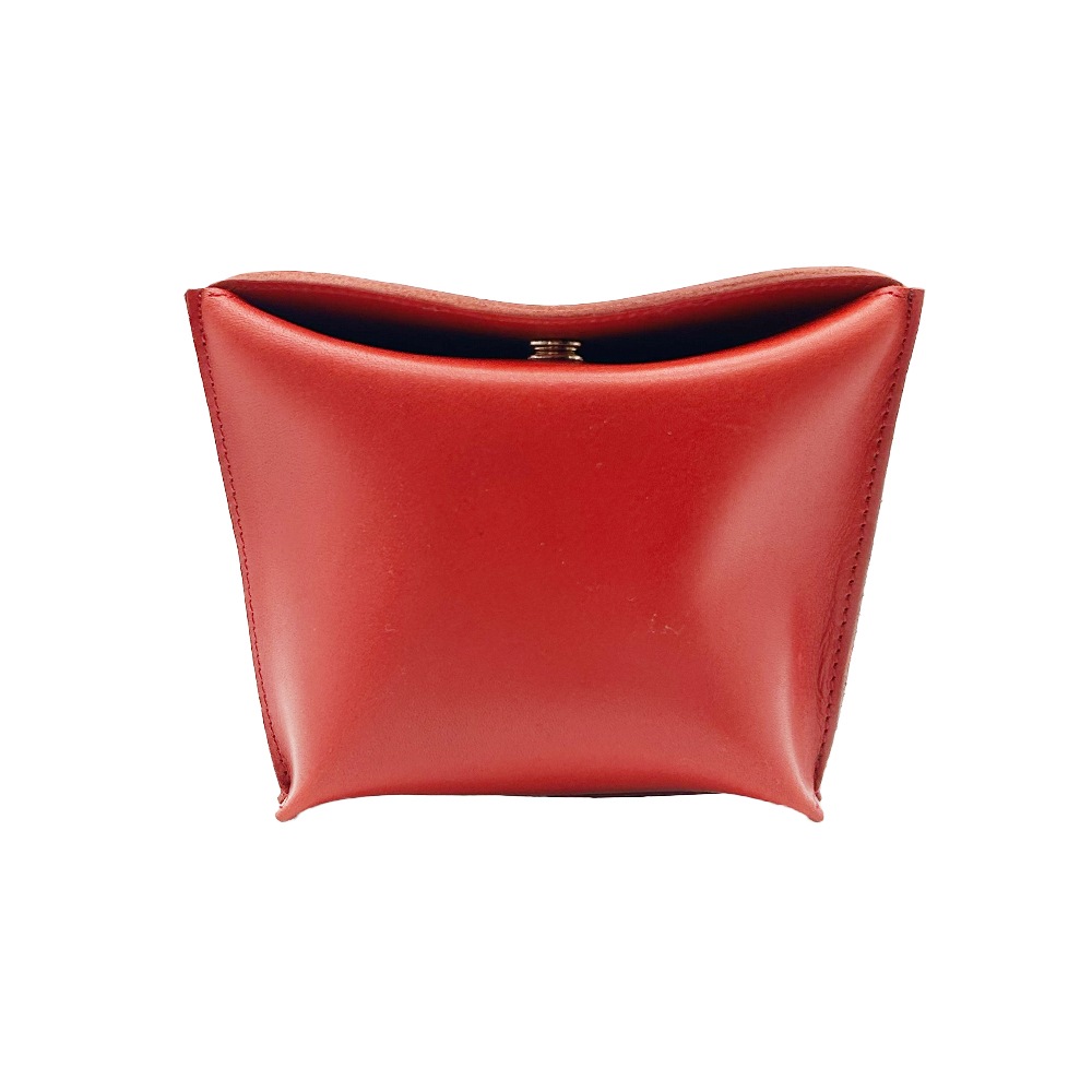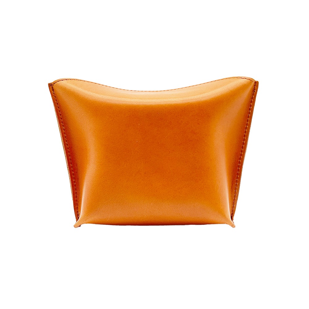栃木レザーを使用したピローボックスポーチ。