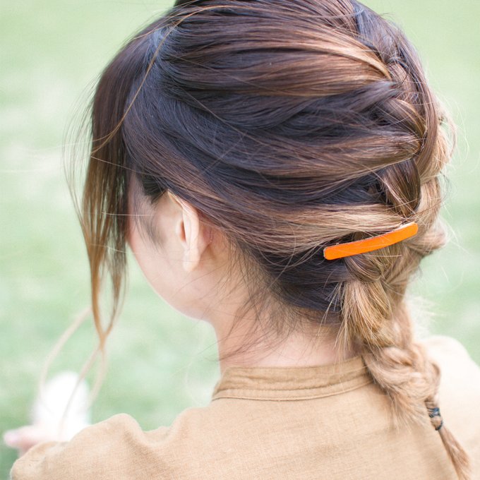 小さめなバレッタはヘアアレンジにぴったりで耳横にちょこんと留めて使ったり、編み込みヘアアレンジのアクセントとしてもお使いただけます。
