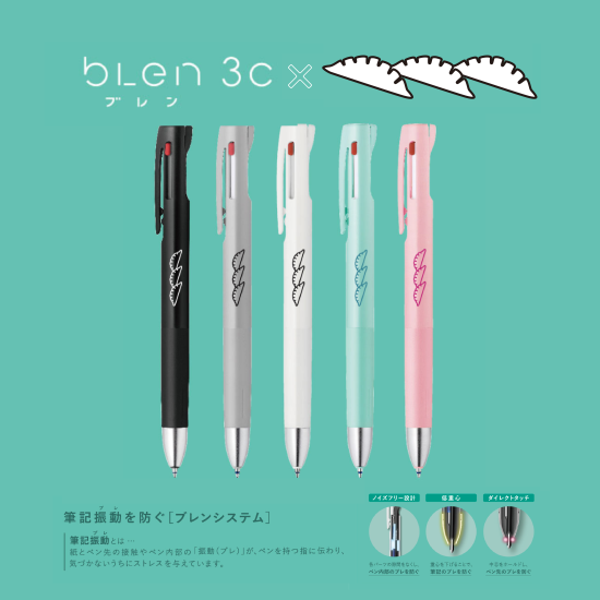 多色ボールペン『ブレン3C』は「ブレン」で培った振動制御の「ブレンシステム」を応用しつつ、サイズやデザインを限りなく「ブレン」に近づけることで、「ブレン」シリーズとしての統一感を実現しました。