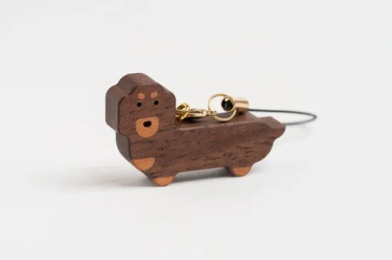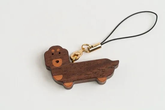 無垢の木材を2種類使用し、色合いを表現した切り出したストラップです。