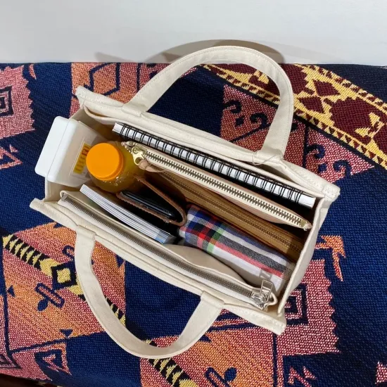 内側にファスナー付きポケットと、深めのポケットの2つを備えて見た目より大容量で荷物が入ります。