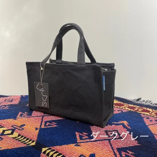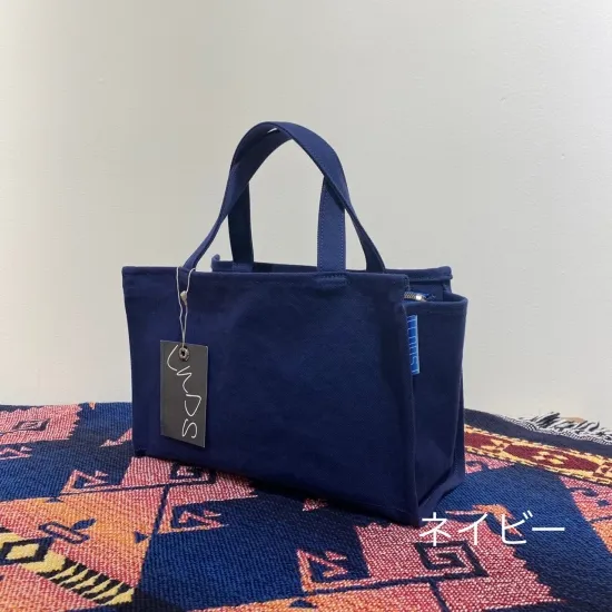 ファスナーの金属部分以外すべて同色の帆布の生地だけで作られているため色の切り返しがなく、生地そのものの発色がより一層引き立つモデルです。