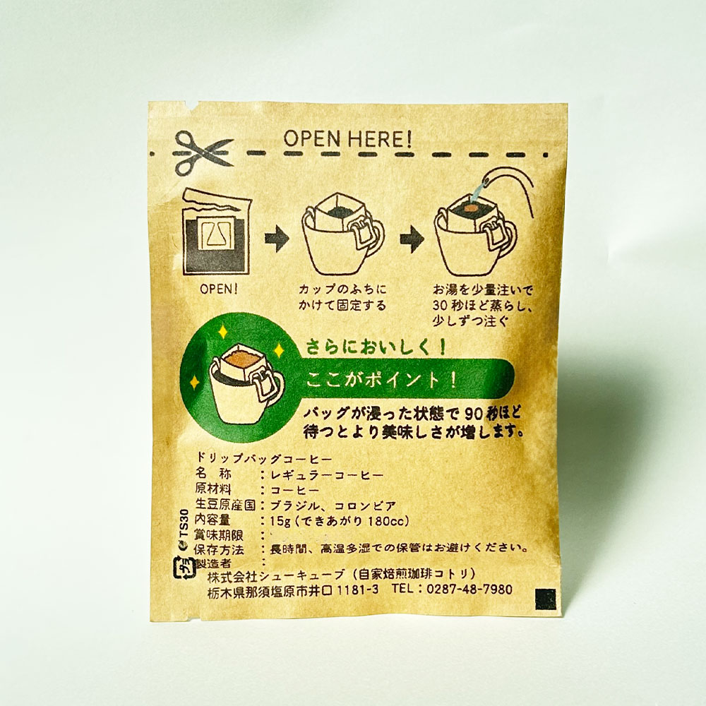 自家焙煎珈琲コトリのオリジナルブレンドドリップバッグ。