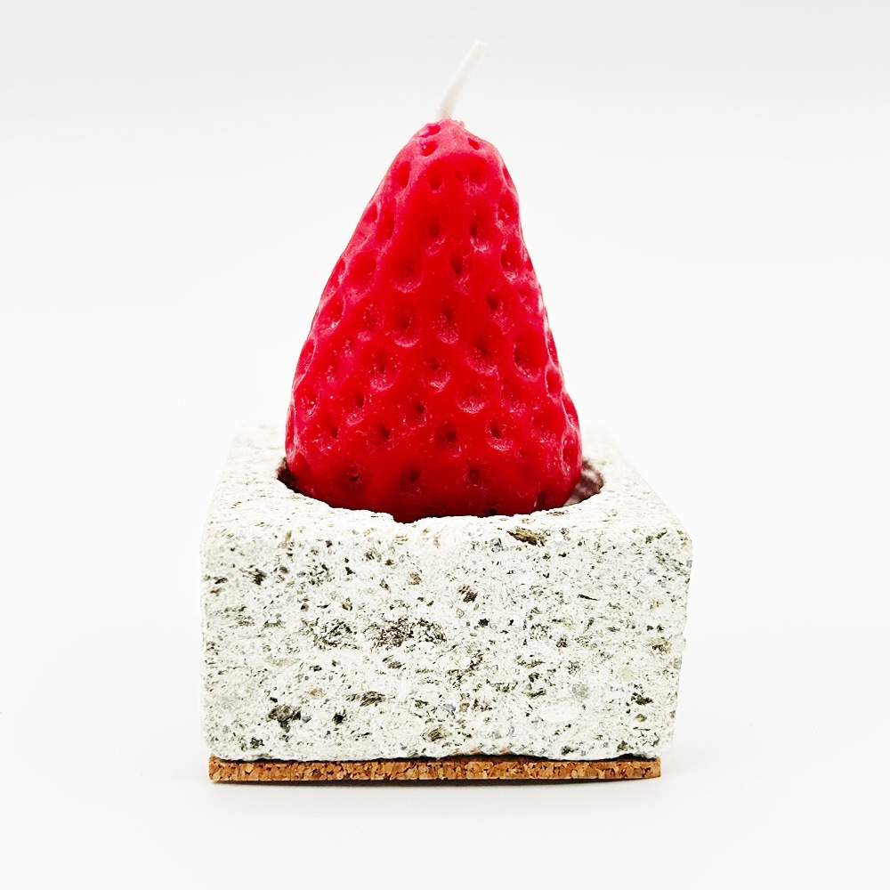 キャンドルの台座には大谷石を使用しており、いちごの形のアロマキャンドルを引き立て、お部屋のインテリアとしてもお部屋を華やかに彩ります。