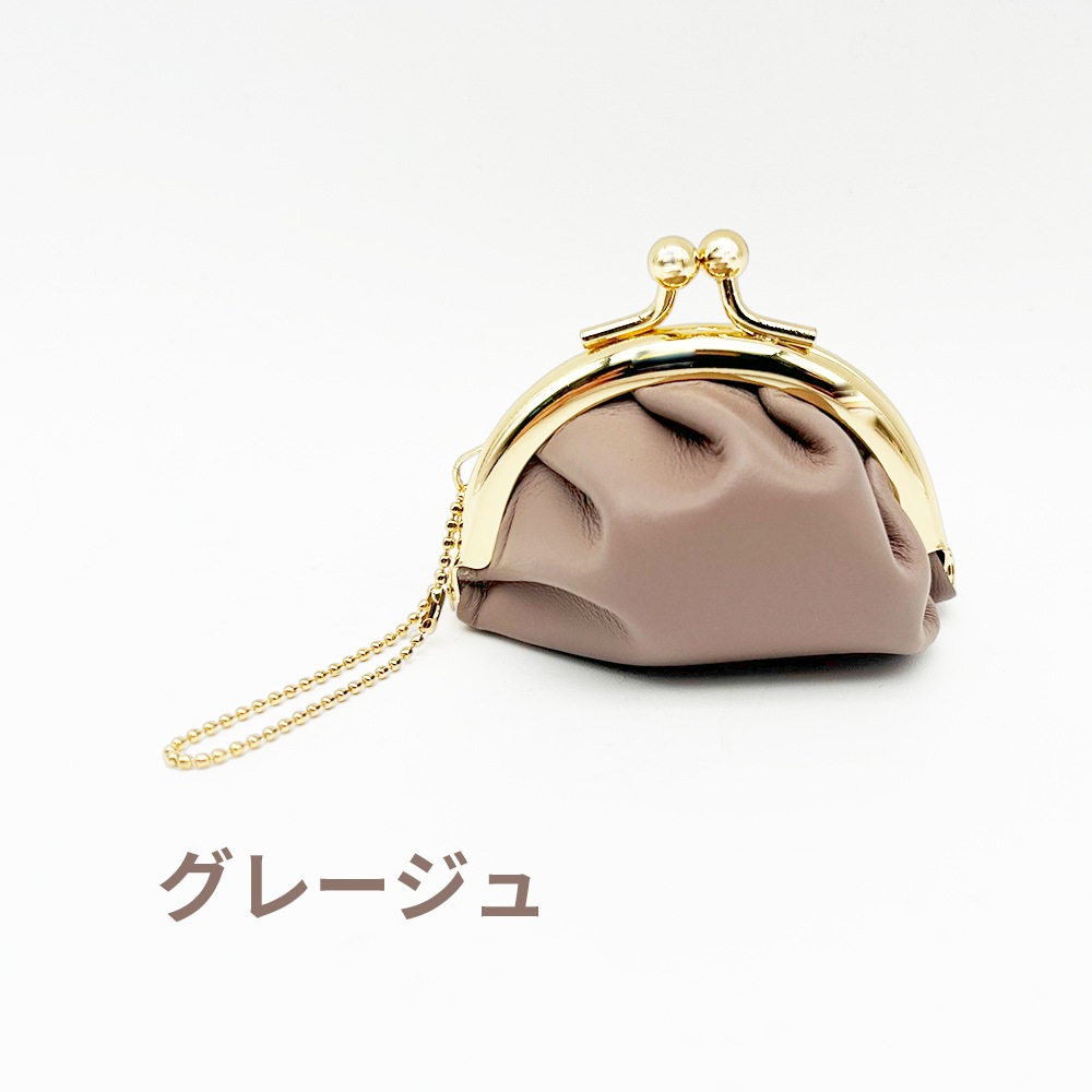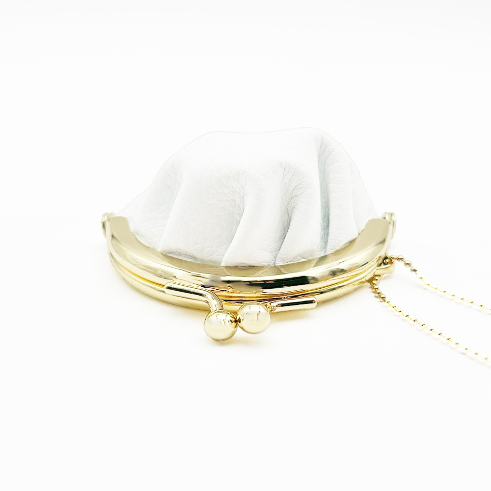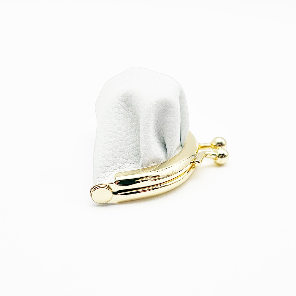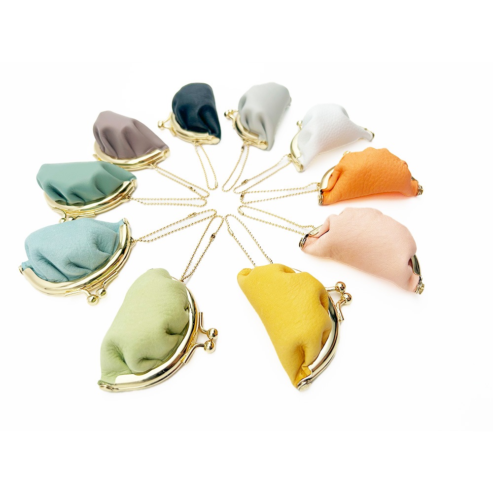 ふっくらとした餃子の形をしたがま口財布で、本物の餃子のようにひだを作り、口金にはめ込む作業は大変なものですが、 革職人がひとつひとつを手作業で行い、丁寧で繊細な仕上がりを実現しました。