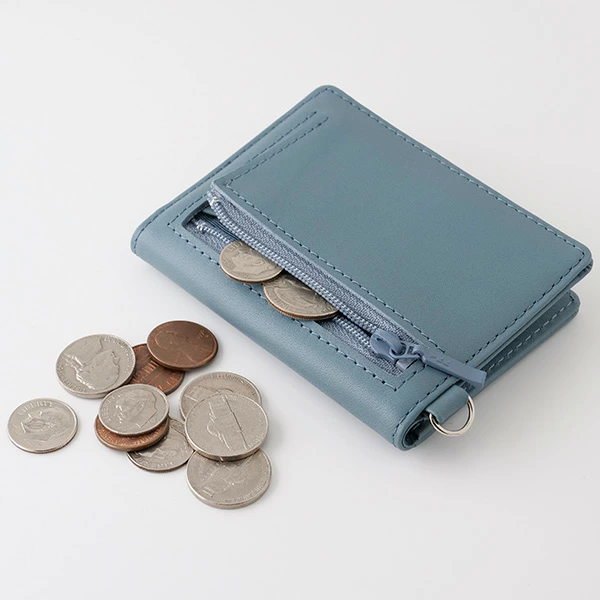 小銭入れは片側を笹マチにしたポケットで収納量をアップさせました。ファスナーを閉めればマチはフラットにたためるので、小銭が少ないときはあまり厚みが気になりません。内側のカードの収納枚数にもよりますが、小銭10枚くらいまでが適量です。