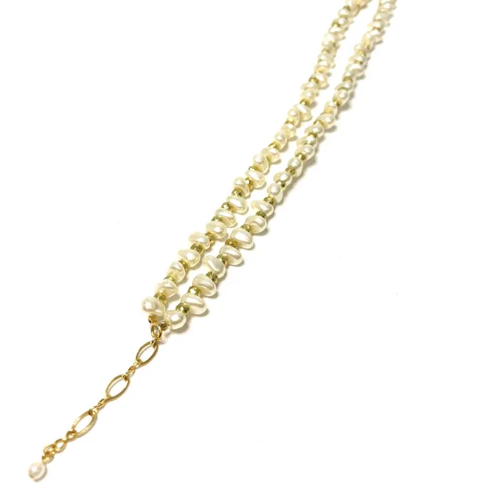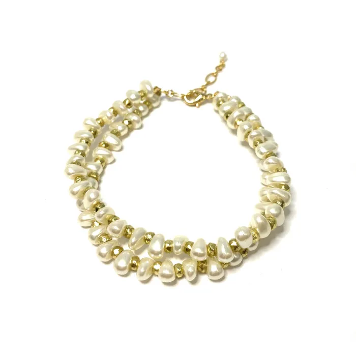シンプルながら高級感漂う、2重ブレスレットはコーディネートのアクセントに。