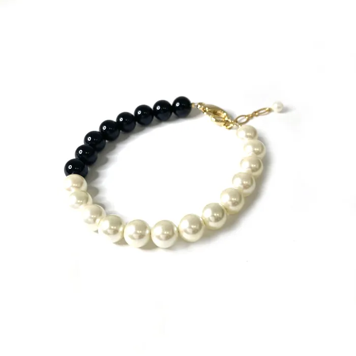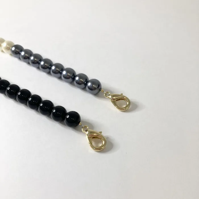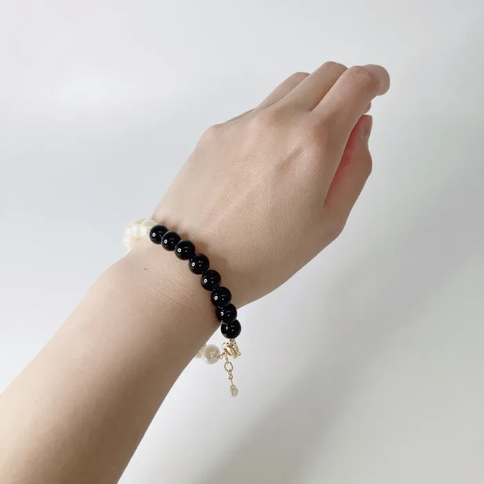 パールのブレスレットにブラックパールをアクセントに加えてあります。