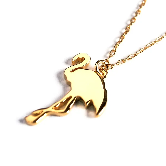 小さなフラミンゴのチャームが胸元を印象的に演出します。