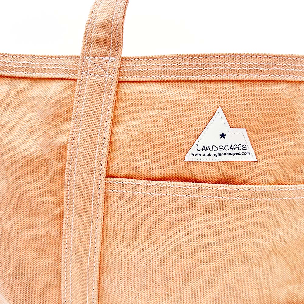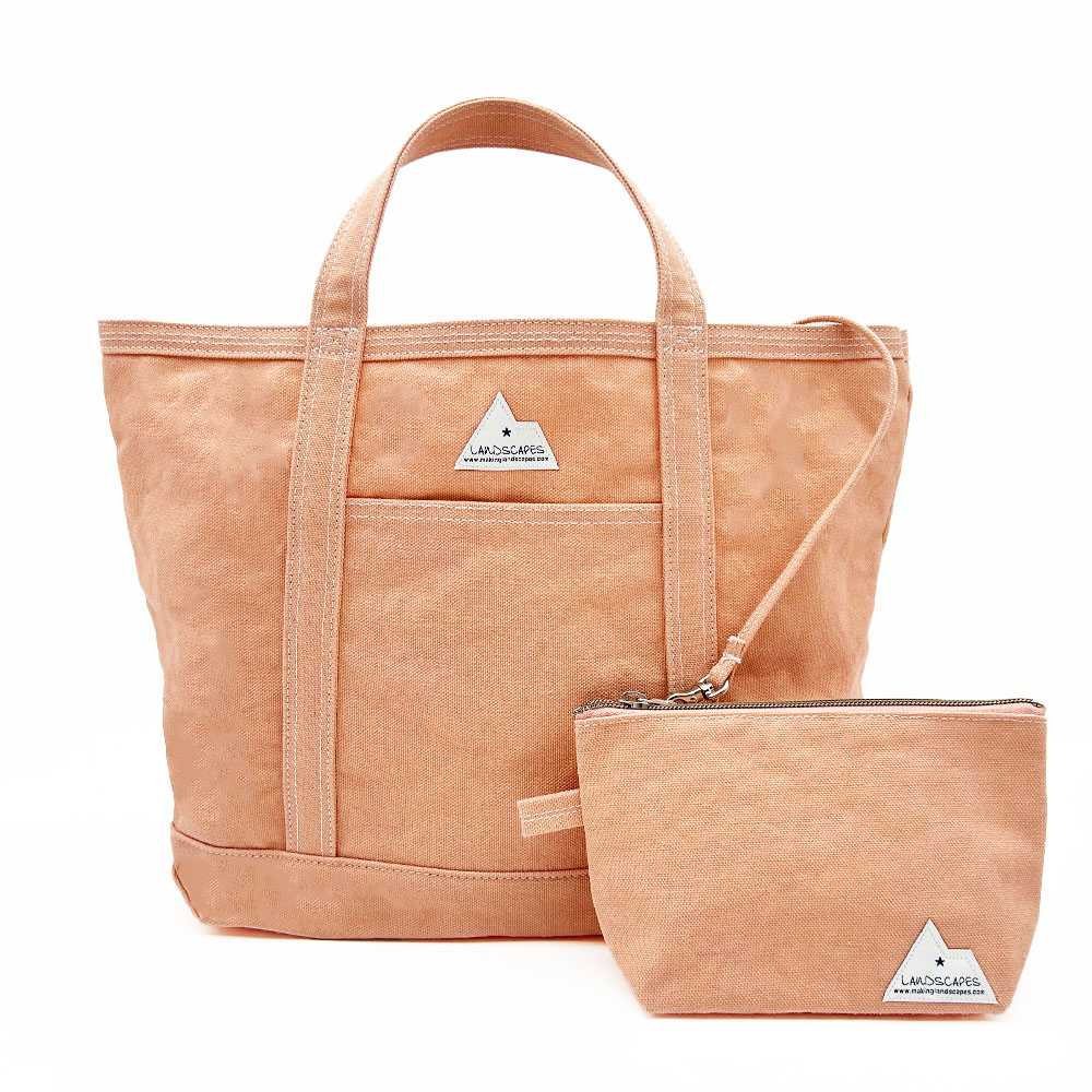 パラフィン加工の8号帆布にウォッシュをかけてランダムな色合いを出したLandscapes定番の生地を使用したトート。