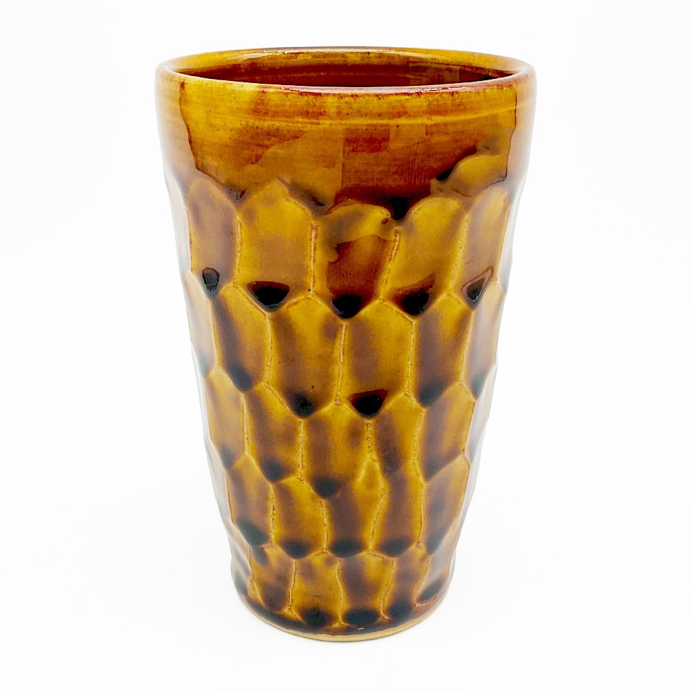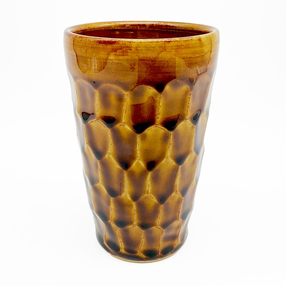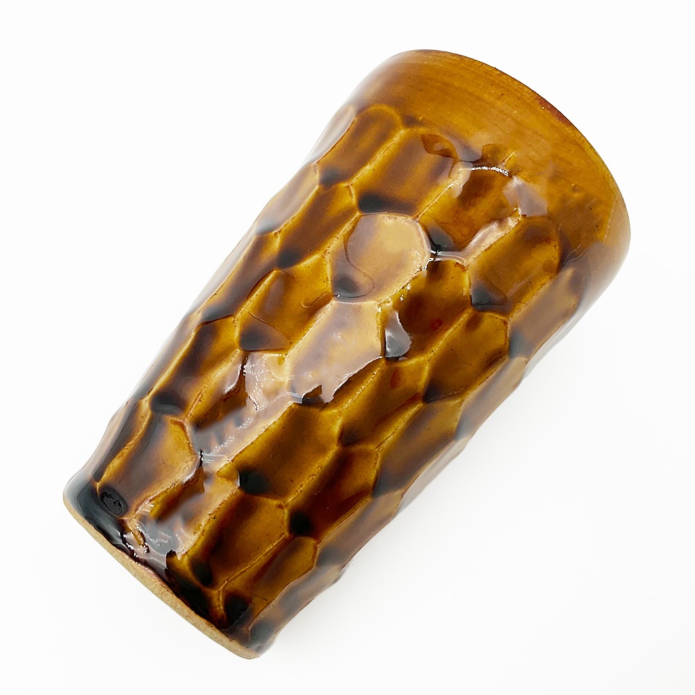 「面取りフリーカップ 飴」はてなじみのよい形状と飲み物をを選ばないフリーな用途からも人気のカップです。