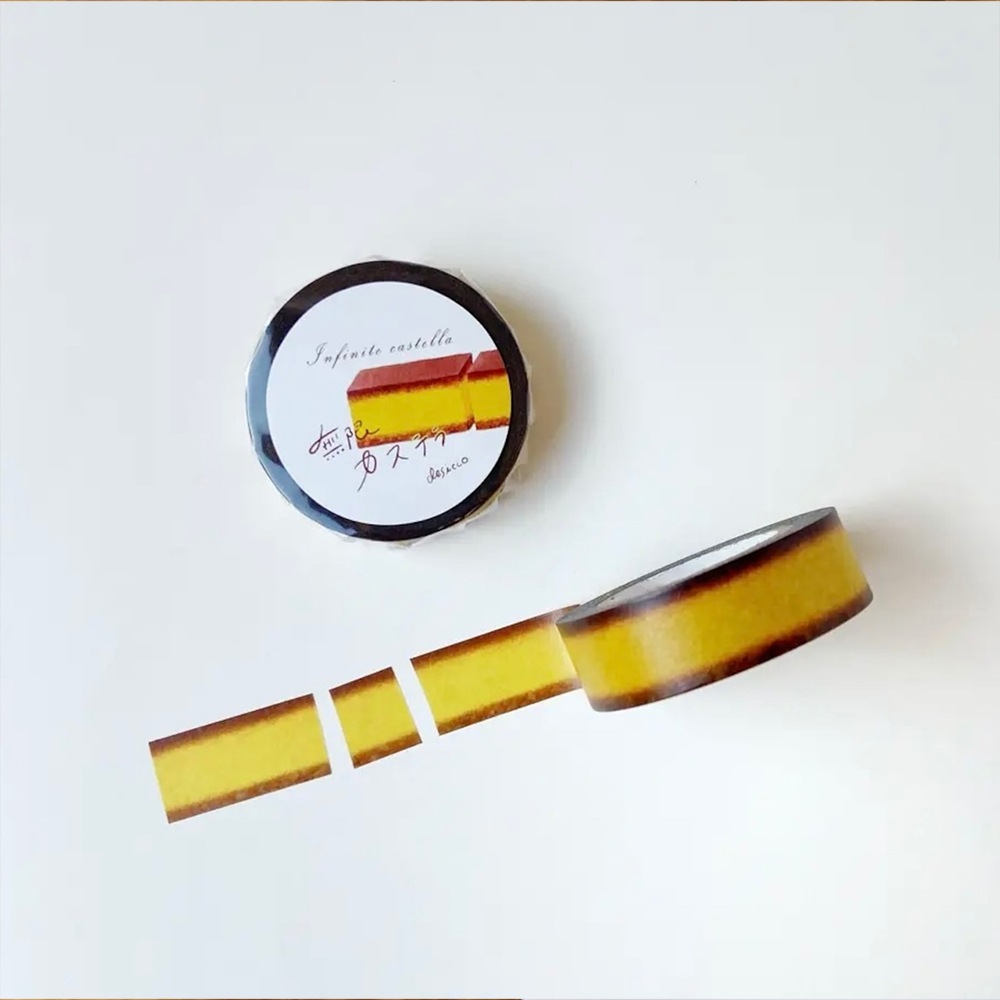 無限カステラマスキングテープは、まるでしっとりふわふわのカステラがそこにあるかのようなカステラマスキングテープです。