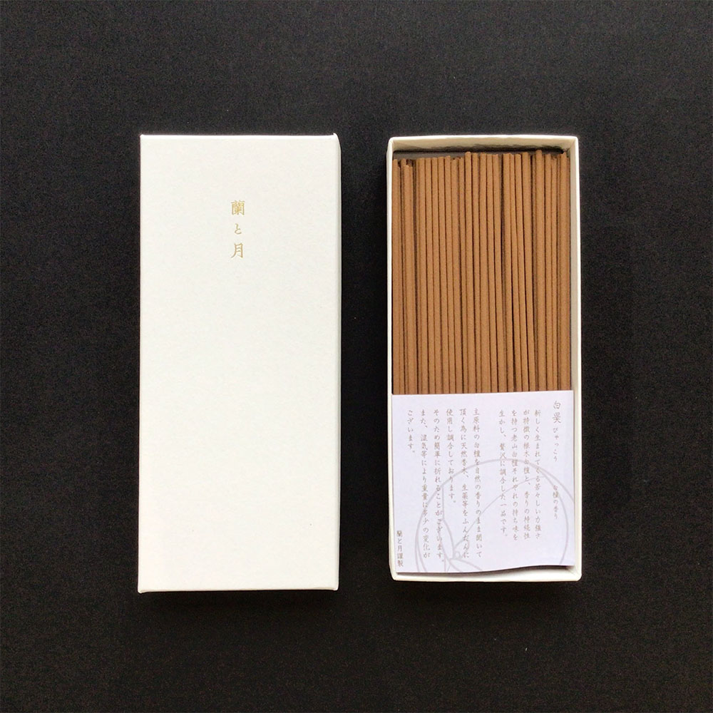 どっしりとした重く甘い香りに深みを持たせ、わずかな酸味を加える事で、蘭と月こだわりの根木白檀を主役に立てた、薫香師屈指の逸品です。
