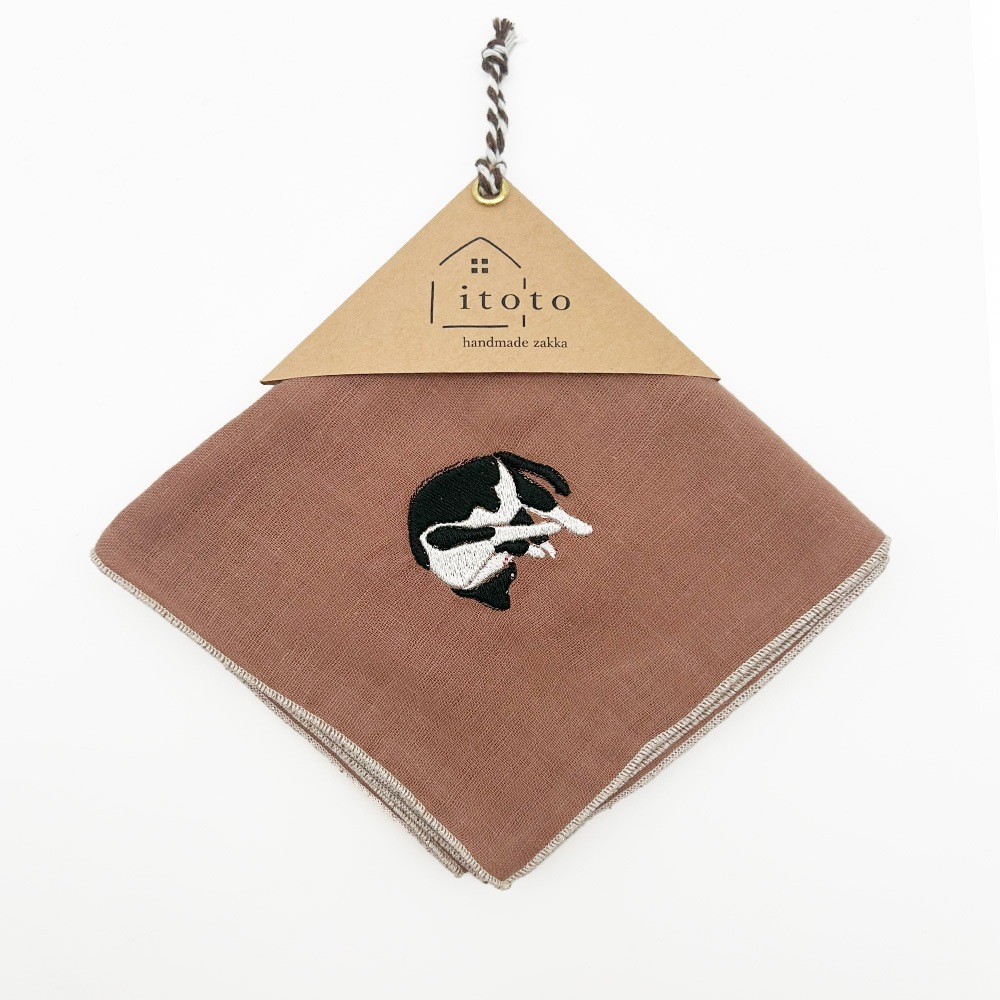 白黒の猫さんがまるっとくるまって寝ている愛らしい刺繍