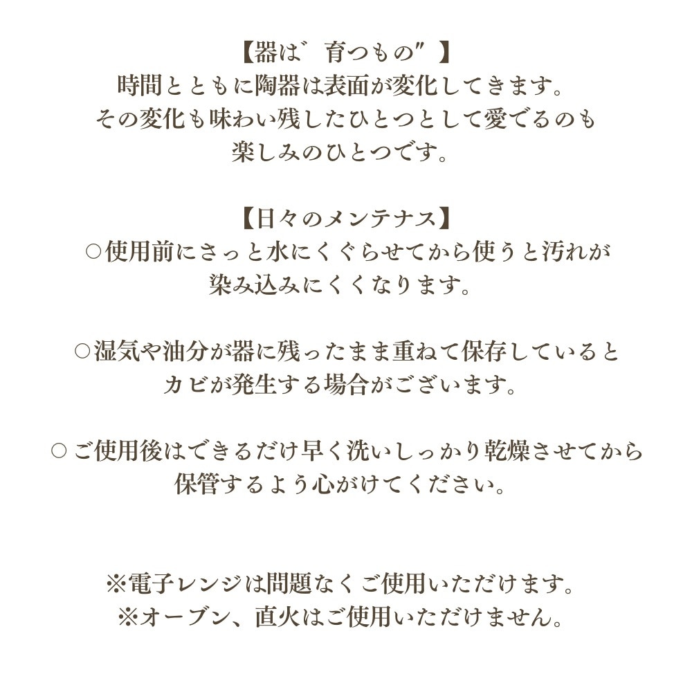 【陶器は素材の性質上、汚れが染み込みやすいものです】
