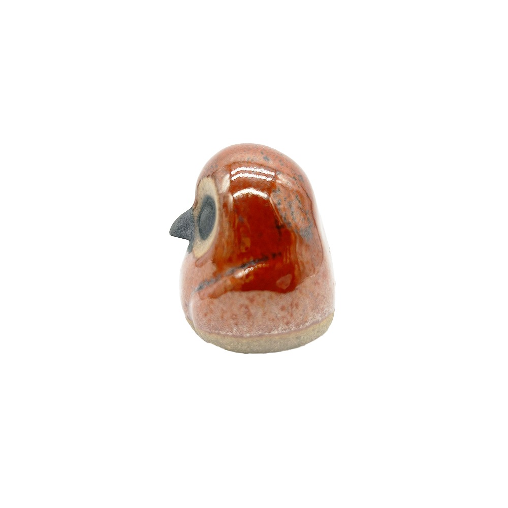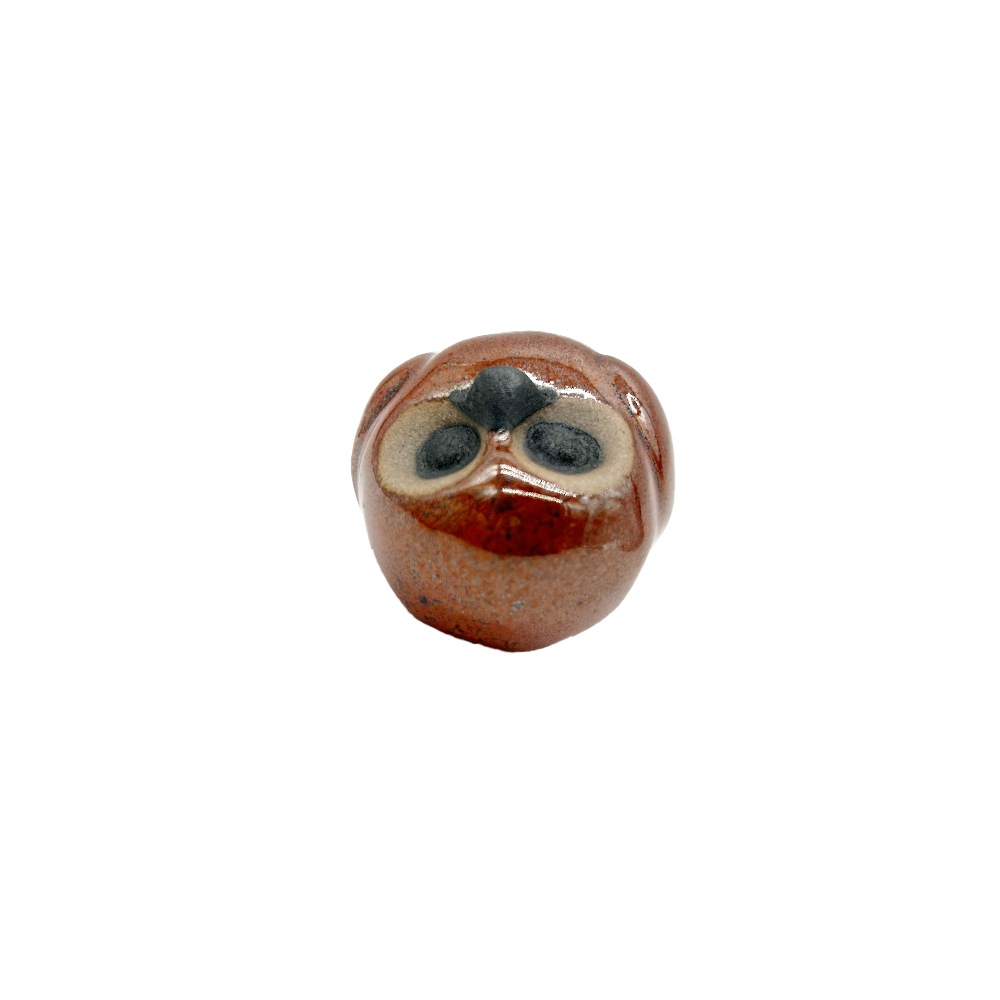 栃木県の伝統工芸品「小砂焼(こいさごやき)」で作られた小さな豆ふくろうの置物。