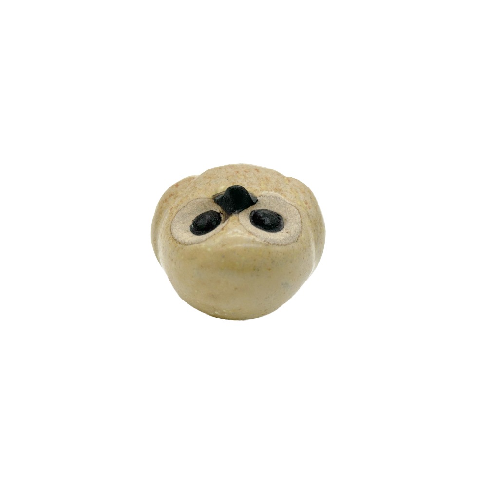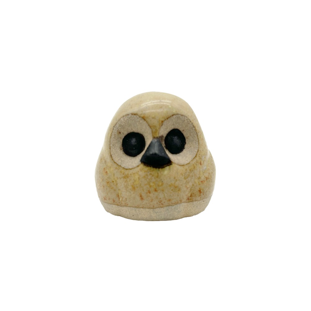 栃木県の伝統工芸品「小砂焼(こいさごやき)」で作られた小さな豆ふくろうの置物。