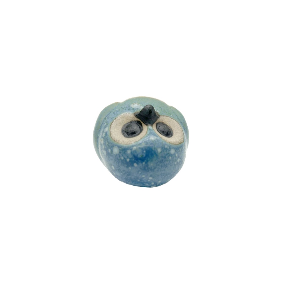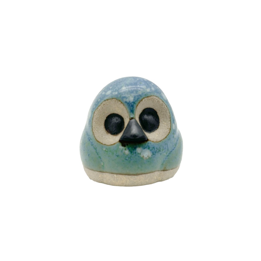 栃木県の伝統工芸品「小砂焼(こいさごやき)」で作られた小さな豆ふくろうの置物。
