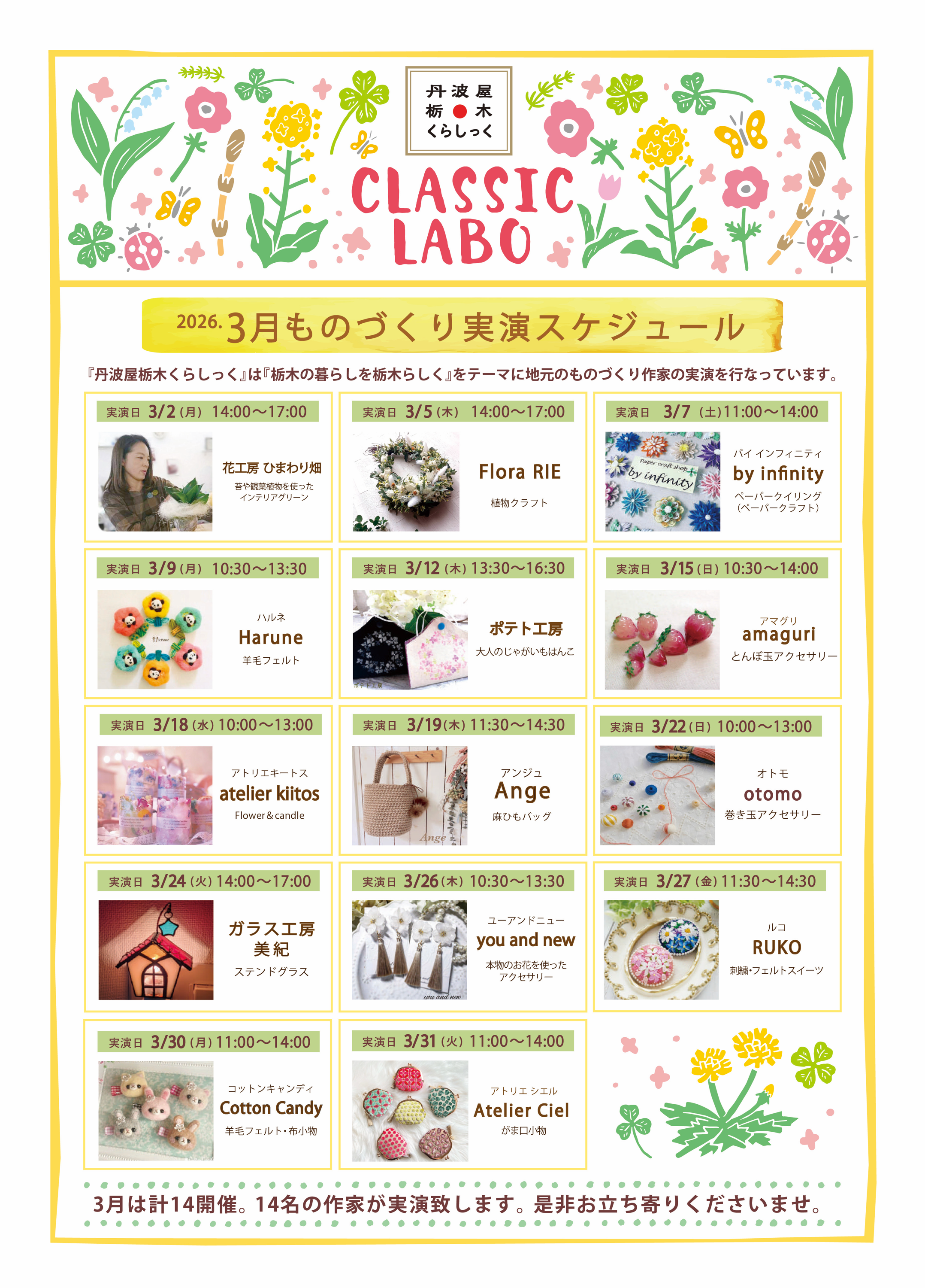 ものづくり実演スケジュール。